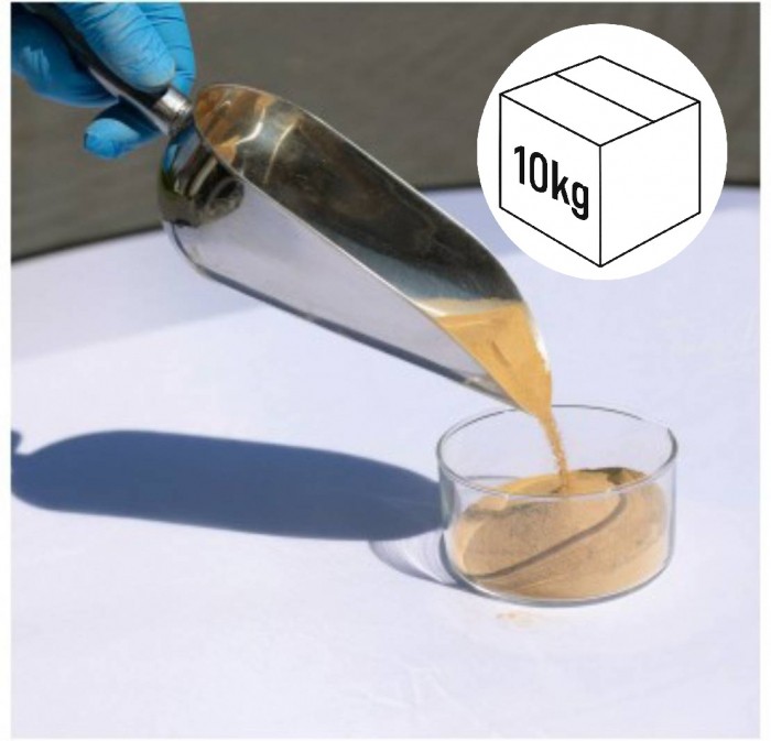 A dry, free-flowing brown powder containing native propolis extract (40%), silica, and guar gum; suitable for capsules.